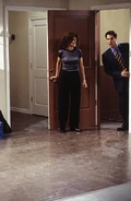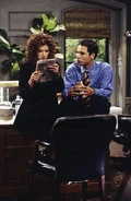 - This episode also features Karen's squeaky voice, higher than that of the pilot, created by Megan Mullally as she developed her character.