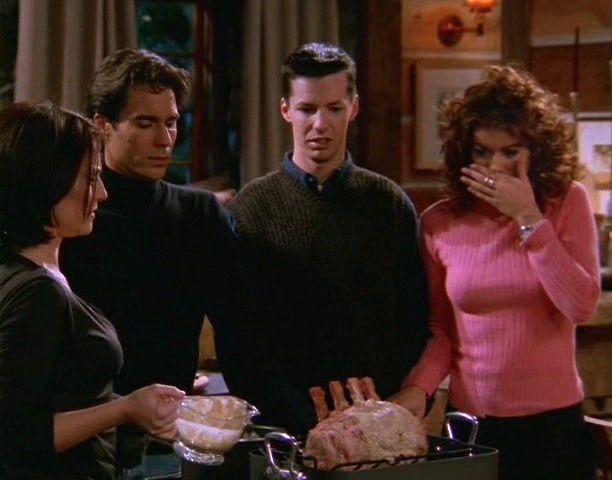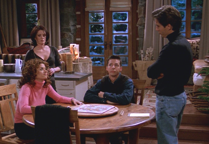 The next day, Karen arranges for Will and Jack to go to a nearby gay bar so Campbell and Grace can have the cabin for themselves. However, Will comes home early so Grace tries to hide Campbell by forcing him out the on the icy porch.