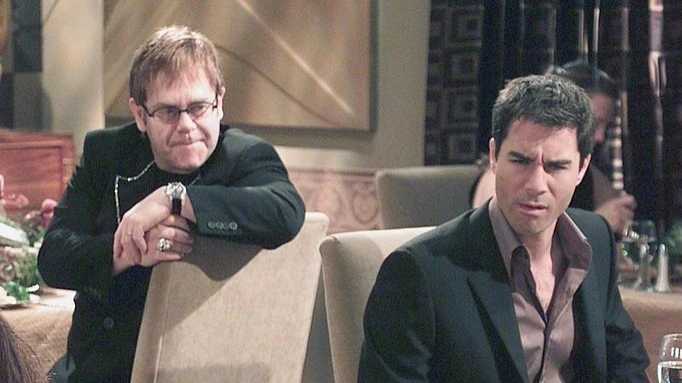 - At the time the episode aired, Elton John has been in a relationship with Canadian filmmaker David Furnish for over a decade. Furnish is a childhood friend of Eric McCormack from Ontario.[1] John and Furnish married in 2014.
